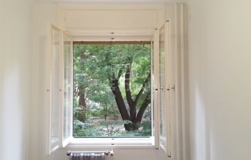 A kertre néző ablakoknak köszönhetően a lakás csendes és napfényes – a város pezsgése csak pár lépésre van, mégis nyugalomban pihenhetünk otthon.