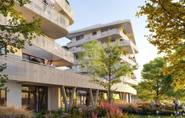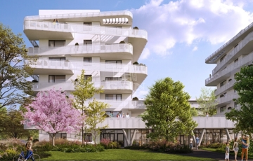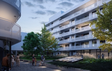 A két épületből álló beruházás során összesen 140 lakás épül, melyek izgalmas vonalvezetésű erkélyei segítik a többlakásos épület harmonikus illeszkedését a ligetes park és a megújult Rákos-patak által létrejövő környezetbe.