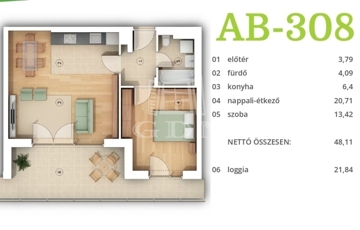 Ez a lakás nappali+2 hálós, 64nm alapterületű és tartozik hozzá egy 18nm-es terasz is.