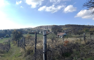 A telek 2579m2, két oldalról lekerített, enyhe lejtőn helyezkedik el. Nagyrésze szőlővel beültetett (sárga muskotály, kadarka, kékfrankos, kecskecsöcsű).