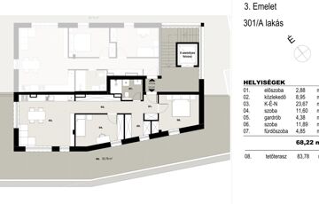 lakás, 68 négyzetméter