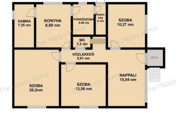 A tágas előkerttel rendelkező déli tájolású ingatlan ideális egy nagy család vagy több generáció számára, hiszen az alsó szintjén található egy nappali + 3 szoba, a konyha és egy tágas kamra, fürdőszoba + külön WC. A kazánház a lakásból, illetve kívülről is megközelíthető. A felső szinten jelenleg egy szoba található erkéllyel, de a tetőtér további része is beépíthető, így növelhető az alapterület.