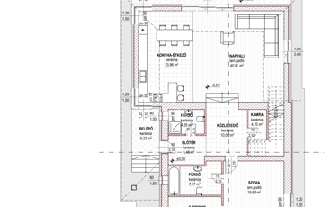 A ház 25 m²-es pincével, nettó 124 m² földszinti lakótérrel és nettó 56,54 m² emeleti szinttel rendelkezik.
