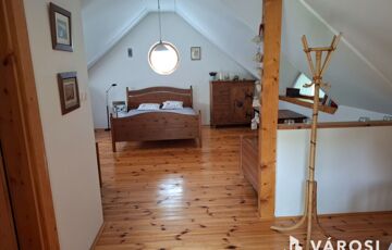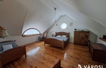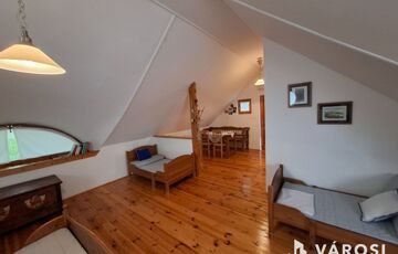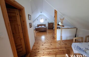 Az emelet külön bejárattal, terasszal és tágas nappali-hálószobával rendelkezik, ahonnan szintén részben balatoni panoráma nyílik.