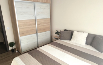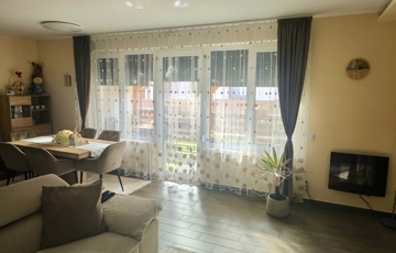 Az ingatlan elrendezése: Nappali-konyha-étkező, 3 külön nyíló szoba, 18 nm-es terasz, fürdőszoba káddal, zuhanyzóval, külön helyiségben wc, mosókonyha, egy állásos garázs.