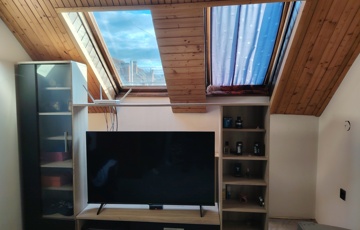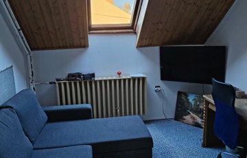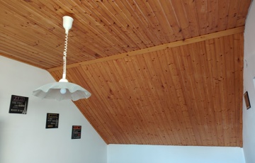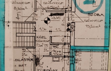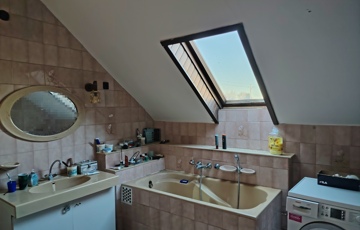 A tetőtéri 60,90 m2 részen 3 szoba, tároló helyiség, fürdőszoba és külön wc található. A tetőtéri helyiségek lambéria burkolatúak.