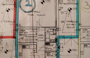 A lakás 162,3 m2 alapterületű, praktikus elosztású, melyből a földszinti rész 101,4 m2, ahol az étkező konyha mellett kamra, tárolóhelyiség, zuhanyzó, wc helyiség és egy 30m2-es tágas nappali is megtalálható. A világos nappaliból közvetlenül a 11,4 m2-es fedett teraszra jutunk, melyen keresztül megközelíthető a hátsó udvari rész is.