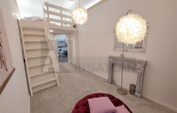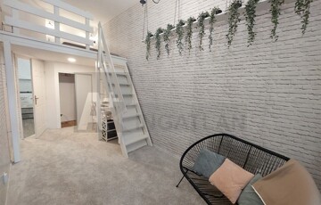 amerikai konyhás nappali és két galériázott hálószoba, tusolós fürdőszoba, 60nm