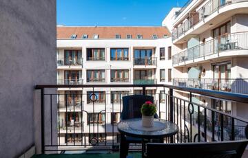 Budapest VII. kerületében, a Holló utcában, a Gozsdu Udvar szívében eladó egy IV. emeleti, 51 nm-es, teraszos, klimatizált, teljesen bútorozott lakás.