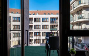 A lakás belső udvarra néz, így a központi elhelyezkedés ellenére csendes és nyugodt.