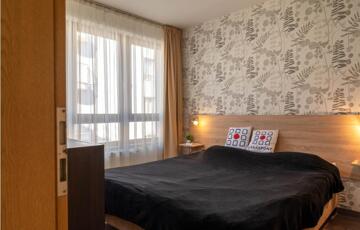 padlótól mennyezetig érő, sötétítő függönyök mindkét nagy ablakon