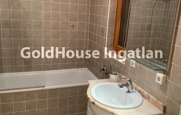A kádas fürdőszoba, a külön WC kézmosóval és mosógéppel, valamint a modern, gépesített konyha (tűzhely, hűtő, mikrosütő) a mindennapok kényelmét biztosítják.