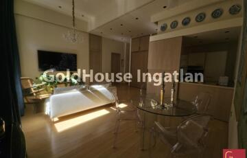 A három magas, klasszikus stílusú ablak (kettő a nappaliban és egy a hálószobában) mind utcára néz, déli fekvésű, és kék taft teljes hosszúságú sötétítő függönyökkel és fehér vászonnal díszített. A lakásban a nappaliban és a hálószobában teljes falhosszúságú, padlótól a mennyezetig érő beépített szekrények találhatók, és jól elhelyezett reflektorok mindenhol. A berendezéshez tartozik egy king size ágy; egy egyedi, 110 cm-es kerek üvegasztal 4 akril, Philip Stark ihlette szellemszékkel; egy Csehországból importált kristálycsillár; és tíz 18. századi kínai export porcelántányér, amelyek a konyha felett vannak elhelyezve és megvilágítva. A konyhában hűtőszekrény, mosogatógép, mosógép, mikrohullámú sütő, elektromos főzőlap és sütő található. A fürdőszobában egy angol hosszú kád található zuhanytartóval, WC és bidé, valamint egy egyedi, nagyméretű tükör és egy tágas, világos tölgyfa szekrény a piperecikkek számára.