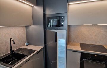 A hálószoba kivételével teljesen gépesített és bútorozott. A beépített gépek és bútorok prémium minőségűek.