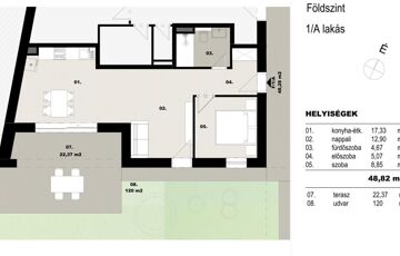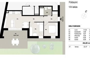 Ha olyan ingatlant keres, amely a város szívében, mégis csendes környezetben helyezkedik el, akkor ne keressen tovább! Ez a 48 m²-es, új építésű földszinti lakás, mely minden igényt kielégít. Az ingatlan egy háromszintes épület része, és egy különleges, 22 nm-es nagy terasszal, és 120 m²-es saját, kerítéssel lekerített telekkel rendelkezik, amely városszinten is nagyon ritkának és egyedinek számít!