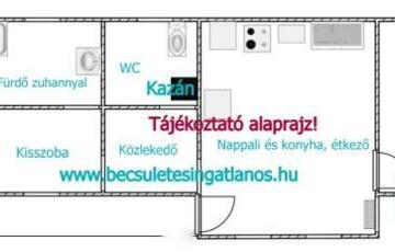 – Belmagasság, elrendezés: konyha-étkező, egy nagyszoba, egy hálószoba, fürdőszoba (tusolóval), külön WC-helyiség.