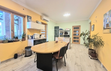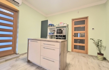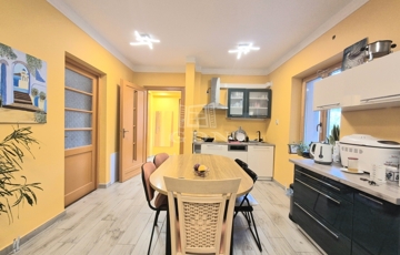 Az emeleti 130 m2-es lakás amerikai konyhával, 4 különnyíló hálószobával, kádas fürdőszobával, erkéllyel került kialakításra.