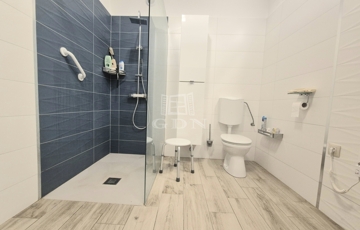 A földszinten lévő, 80 m2-es, két szobás lakás felújított állapotban, korszerűsített gépészettel rendelkezik.