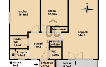 - A 6,8m2 nagyságú terasz déli tájolású.