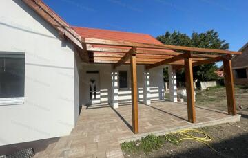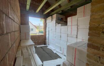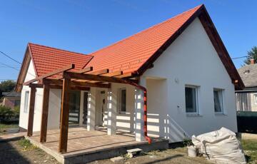 található, a település Veszprémből kerékpárúton is megközelíthető.<br />Általános paraméterek:</p><p>- 103 nm-es, egyszintes, 4 szobás téglaépítésű ház<br />- alapozás: 50 cm-es sávalap<br />- 30 cm vastag Leier falazat, 15 cm-es hőszigetelés<br />- födém: