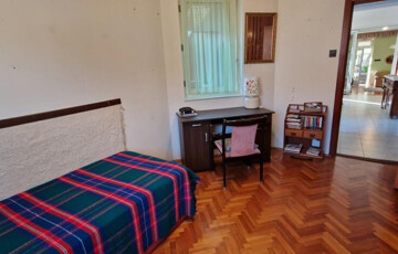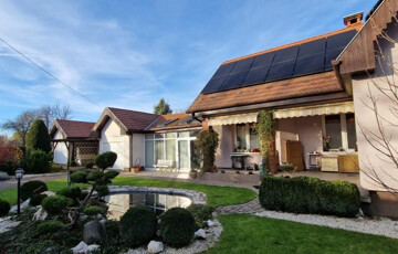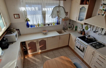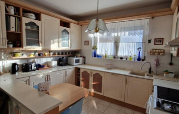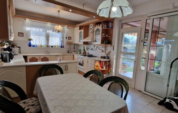 A Kaposvárhoz tartozó Kaposfüreden, az Ibolya utcában kínáljuk megvételre ezt a praktikusan megálmodott és 1991-ben igazán igényesen megépített családi házat. Földszinti részén előtér, tágas nappali, étkező, konyha, kamra, fürdő, közlekedő és két szoba kapott helyet, mindezt később kiegészítették egy télikerttel, ahová került szauna, WC mosdóval, illetve egy épített zuhanyzó. A tetőtérbe kényelmes falépcső vezet, ott a szintén tágas nappaliból nyílik egy nagyobb és három kisebb háló, valamint fent is van egy zuhanyzós fürdő. A lakótér bruttó 213 m2-es. Lent, a ház egy része alatt 26 m2-es pince húzódik, itt helyezték el a fűtést és a meleg vizet is adó kombi gázkazánt. Fűteni lehet még a nappaliban lévő cserépkályhával, vagy a napelemes rendszerről működő klímaberendezésekkel is. 2002-ben a télikert kialakításakor a házat kb. 60 %-ban felújították. Az épület szigetelt, plusz a tetőtérben a szigetelés és a cserép között átszellőztető rész került kialakításra. A külső nyílászárók műanyag keretesek, redőnyösek, kivéve a télikert déli oldalán és a bejáratnál, ahol magas minőségű eloxált alumínium lett beépítve. A tetőszerkezet dupla gerendázattal bír. A ház mögött két garázs és tároló, plusz nyári konyha is található. Van terasz, ami szerves része mind a háznak, mind a kertnek. A teljes hasznos alapterület 308 m2. A bejárati kapuk és garázskapuk távvezéreltek. A 720 m2-es kert csodálatosan gondozott, változatos cserjékkel, virágokkal beültetett, a füves rész speciális, vakondok, pockok ellen védett gyeptéglákból telepített, alatta automata öntözőrendszer van kiépítve a pincéből vezérelten. Egy szökőkutas vízforgatóval ellátott kis tó is gyönyörködteti a szemlélőt. Mind a ház, mind a kert tudatosan tervezett, folyamatosan karbantartott, rendkívül barátságos, otthonos. A szomszédok kedvesek, tisztességesek, a környék nyugodt, biztonságos, családi házas övezet. A minden évszakban kedvelt Deseda tó fél óra sétával vagy pár perc autózással elérhető, többféle szabadidős tevékenységhez lehetőséget nyújt. De a 67-es út és az M7-es a Balatont vagy Budapestet is közel hozza. Kaposvári lakás értékegyeztetéssel beszámítható.