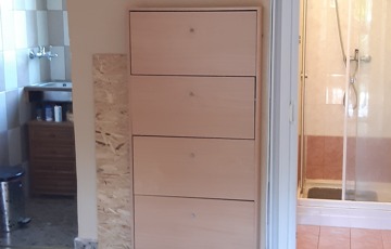 Jó elosztású,világos ház.A teraszról belépve a nappaliba érkezünk,szemben a konyha és a fürdő kapott helyet,melyben mosdó,wc és zuhanykabin található.A két különálló szoba szinten a nappaliból nyílik.A tágas terasz igény szerint beépíthető