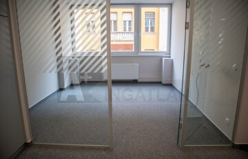 Szeged Belvárosában, a Kígyó utcában kiadó ez a 2. emeleti, modern iroda tárgyalókkal, konyhával, lifttel stb!