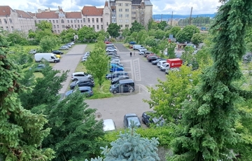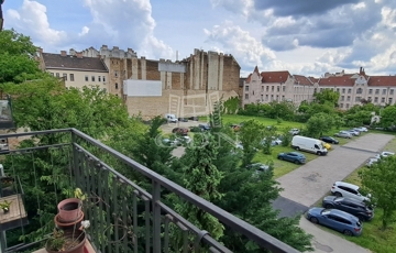 Napsütötte erkélyéről kellemes térérzet biztosított, innen a budai hegyek is látszódnak.