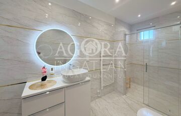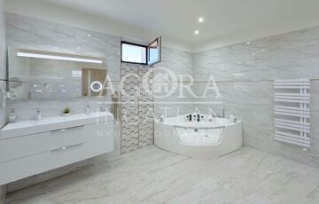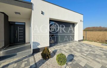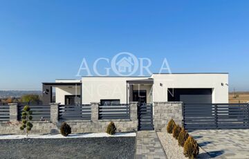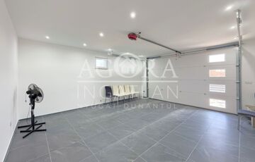 - Helyiségek: amerikai konyhás nappali (65 m²), 3 hálószoba, 2 fürdőszoba, háztartási helyiség, 2 fedett terasz, 33 m²-es garázs