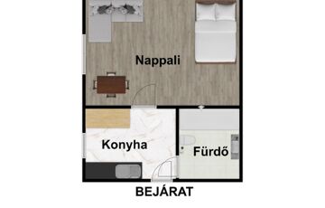 -29nm-es lakás(konyha, 1 lakószoba, fürdőszoba)
