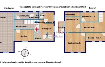 -7 igényesen felújított vendégszoba (mindegyik saját, tusolós fürdőszobával, hűtő-fűtő klímával)