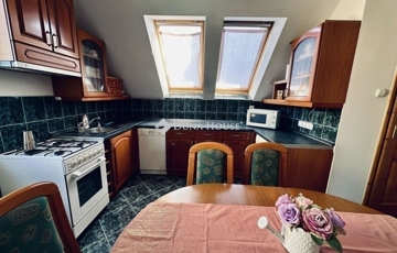 Belváros szívében, mégis csendes, zöldövezeti környezetben kínálunk megvételre egy 73 m2-es, jó állapotú , belső két szintes téglaépítésű lakást, liftes társasházban.Az ingatlan elosztását tekintve konyha-étkező, nappali , fürdő,-wc, spájz, előtér valamint a tetőtérben kialakításra került 1 hálószoba+külön wc.A lakás több oldalról tájolt, körbenapozott, így nemcsak világos és kellemes kilátással rendelkezik, hanem alacsony rezsijű is a gázcirkó fűtésnek köszönhetően.Az ingatlan érvényes Booking engedéllyel rendelkezik, így rövid és hosszú távú kiadásra egyaránt kiváló lehetőség.A környék zöldövezeti elhelyezkedése miatt ideális választás mind családoknak, mind fiatal pároknak.A belváros közelségének köszönhetően minden fontos szolgáltatás, bolt, iskola és közlekedési csomópont néhány perc sétával elérhető.További részletekért, megtekintésért hívjon bizalommal.