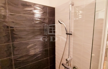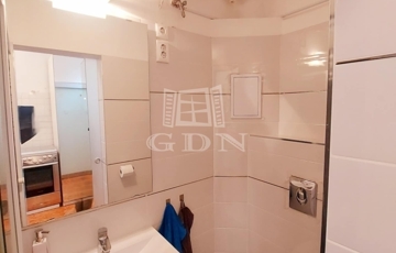 A zuhanyzós Wc egy kézmosóval ellátott, valamint villanybojler is itt kapott helyet. A lakáshoz tartozik egy pince-tároló is, lakóközösség rendezett.