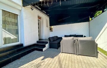 Az ingatlan utcafrontról külön kapun közelíthető meg, a lakás bejárata egy 24 nm nagyságú térkővel burkolt telekrészről van, ami igény szerint kocsibeállóként is használható.