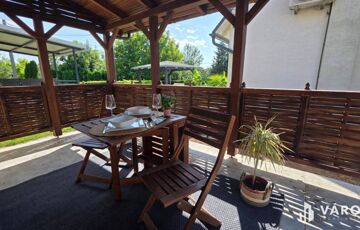 Az épülethez tartozik egy 14.2 m²-es, fedett terasz is mely tökéletes helyszín a nyugodt reggelikhez vagy esti beszélgetésekhez.