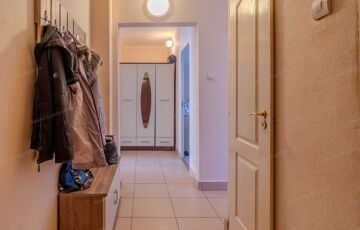 A lakásban két különnyíló szoba biztosítja a privát életteret és a nyugalmat, így akár pároknak, akár egyedül élőknek is tökéletes választás.