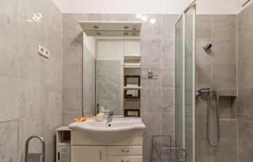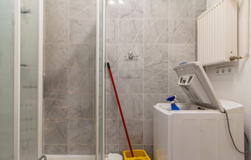 A fürdőszobában zuhanyzó és mosógép kapott helyet.