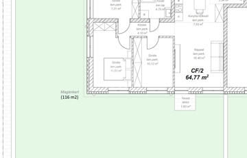 Mendén csodálatos zöld környezetben a Hétdomb lakóparkban, I. ütem második szakaszában megvalósuló új építésű zárt lakóparkban, A. kategóriás energiatakarékos ( hőszivattyús ) 16 lakásos társasházban, nettó hasznos 64,77 m² alapterületű, FÖLDSZINTI kertkapcsolatos lakást, SAJÁT 116 m² KERTRÉSSZEL kínálunk eladásra (C épület Földszint 2. Lakás).