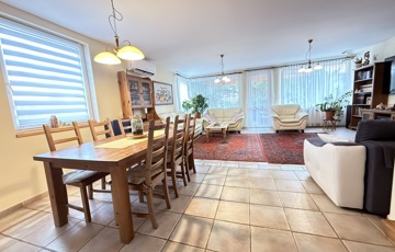 Érd egyik legkedveltebb, csendes és zöldövezeti részén, Fenyves-Parkvárosban kínálunk megvételre egy 165 m² hasznos alapterületű, igényesen kialakított sorházi otthont, amely ikerházként funkcionál, és az utcafronttól távolabb, intim, nyugodt elhelyezkedéssel rendelkezik.