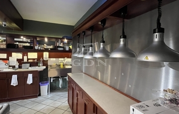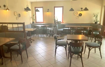 A földszinten melynek hasznos alapterülete: 106,6 nm + 40 nm terasz, és a pinceszinten 103,2 nm működik az ételbár, a tetőtérben egy 82,3 nm alapterületű lakás van kialakítva.