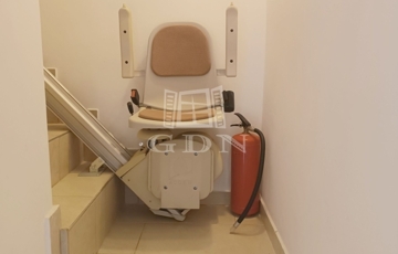 A két szint teljesen külön bejárattal és önálló funkcióval is használható, közöttük mozgáskorlátozott lépcsőlift biztosít akadálymentes közlekedést.