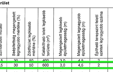 A telek "falusias lakóövezetben" helyezkedik el. Az övezetre jellemző, főbb beépítési paraméterek: