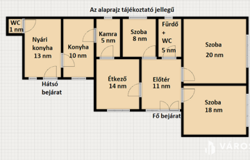 A ház jelenlegi felosztása a képek között egy tájékoztató jellegű alaprajzon van feltüntetve.