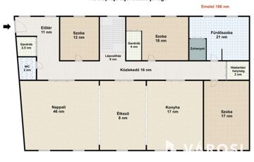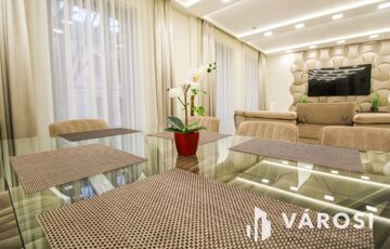 - Grandiózus belső terek – 71 m²-es amerikai konyha-étkező-nappali, három hálószoba (12, 17 és 22 nm), két fürdőszoba (21 és 5,5 nm), külön WC, gardróbok, háztartási helyiség.