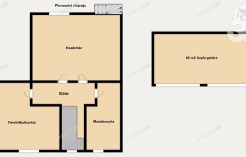 -pinceszinten mosókonyha, kazánház, tárolók, buli szoba