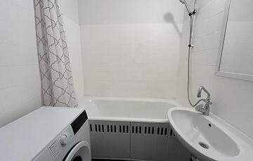 A fürdőben újabb burkolat, valamint a jól bevált vaskád szolgálja a mindennapi kényelmet, a mosógép kiállása szintén rendelkezésre áll.
