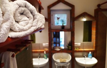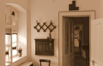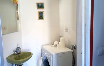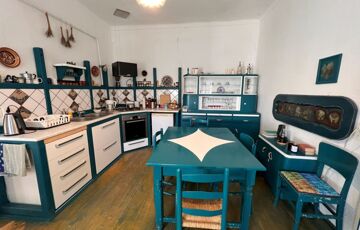 A ház megőrizte eredeti báját: az egyik hálószobában látható sablonminta 1923-ból származik, amely a múlt különleges és autentikus darabja. A fürdőszoba teljesen megújult, új elektromos radiátorral és automatikus páraelszívóval felszerelve, így a kellemes közérzet garantált. A folyosón modern vízlágyító berendezés található, amely tovább növeli a komfortérzetet.