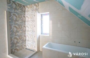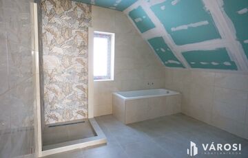 Teljesen felújított 122 m2 lakóterű ház új tetőtérrel, gépesített konyhával, fedett terasszal és külső lejáratú pincével.