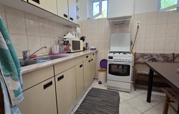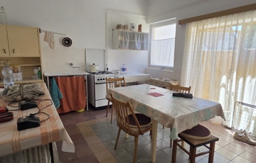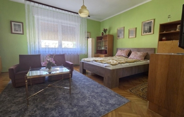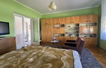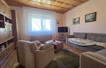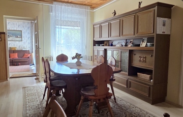 A lakórész egy szintes, 120 nm alapterületű, részben bútorozott, elosztása: előszoba, közlekedő, 3 szoba, konyha, kamra, étkező, fürdőszoba káddal és zuhanykabinnal, külön WC. Az udvar felé fedett terasz.