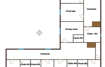 Vendégeknek 6 különálló szoba, mindegyik saját fürdőszobával és WC-vel